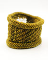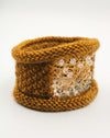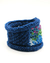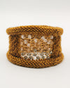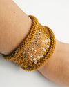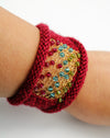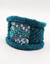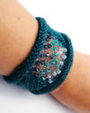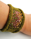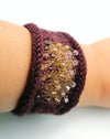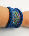 A mixed-media cuff bracelet that combines luxury hand dyed yarn with shimmering crystal beads and knitted wire.